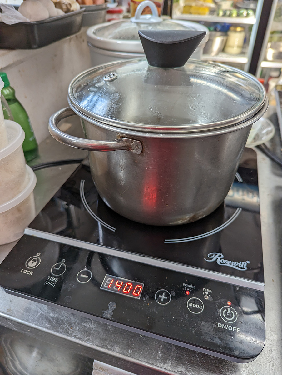today i saw the newly-repaired induction cooker back in action. my father didn't actually test it until last night, maybe to wait for the silicone to properly cure for 24 hours. it works like new now, you'd never know the glass surface was detached at one point. i used that induction cooker plus another to make a new batch of 30 tea eggs.