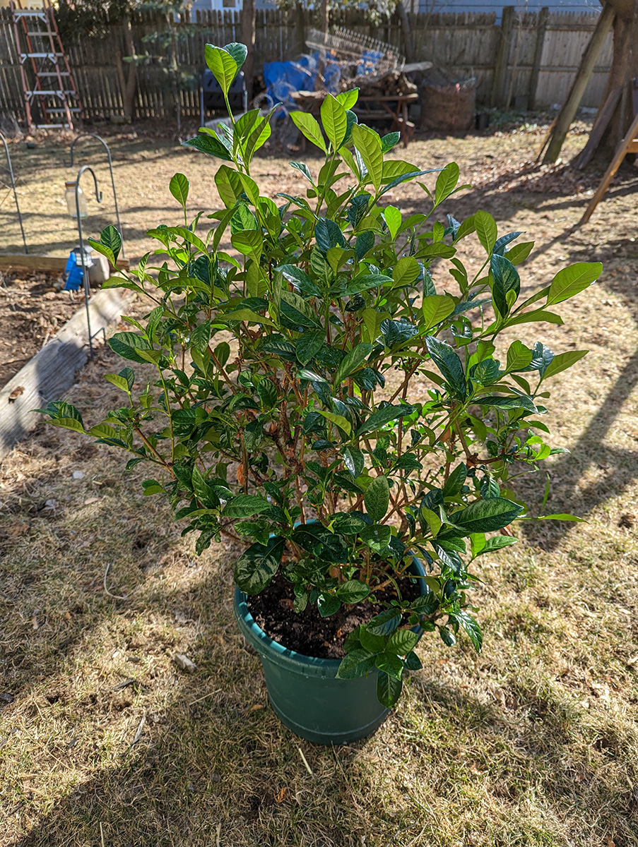 i biked to my parents' place in the afternoon to pick up an amazon delivery and a temu package that had been dropped off. it was warm enough (58°) that i didn't bother wearing my jacket even though it was still pretty windy. the two neighboring houses undergoing simultaneous renovations have hired a small army of contractors, so there must've been at least 8 cars parked all along the street. while i was in belmont, i also brought the gardenia out from the basement and sprayed it again outside, this time with some insecticide soap. i gave it a good dousing, including underneath the leaves. this weekend i'm going to spray it again, with pyrethrin. i might also bring out the jasmines and give them a good spraying as well, can't be certain they haven't been infected with spider mites as well.