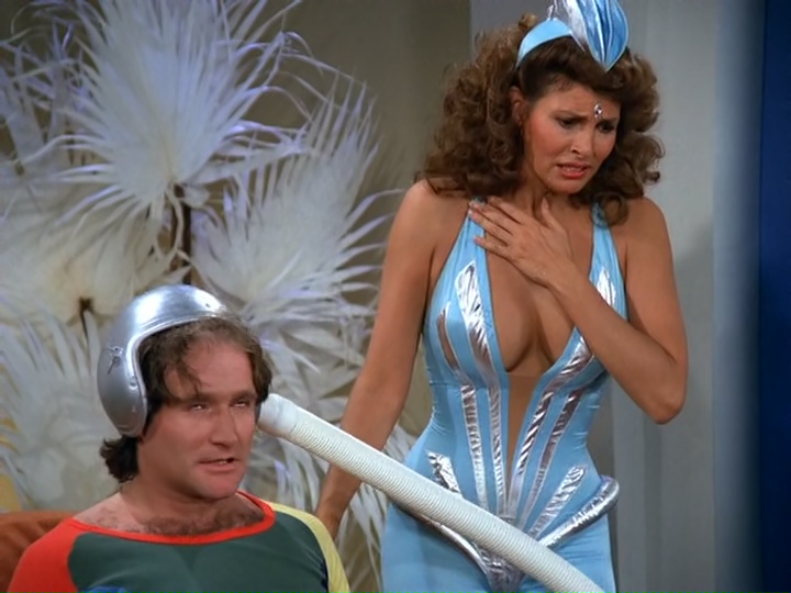 racquel welch died today, age 82. i knew of her before i even knew who she was from one of my favorite episodes of mork and mindy back in the early 80's, season 2, "mork vs. the necrotons". she played a sexy necroton agent sent to kidnap mork and get him to reveal what he know about earth before a necroton invasion. of course her interrogation tactics involve hot tubs and tickling, and allowed welch to showcase her comedic timing and slapstick routines along with robin williams.