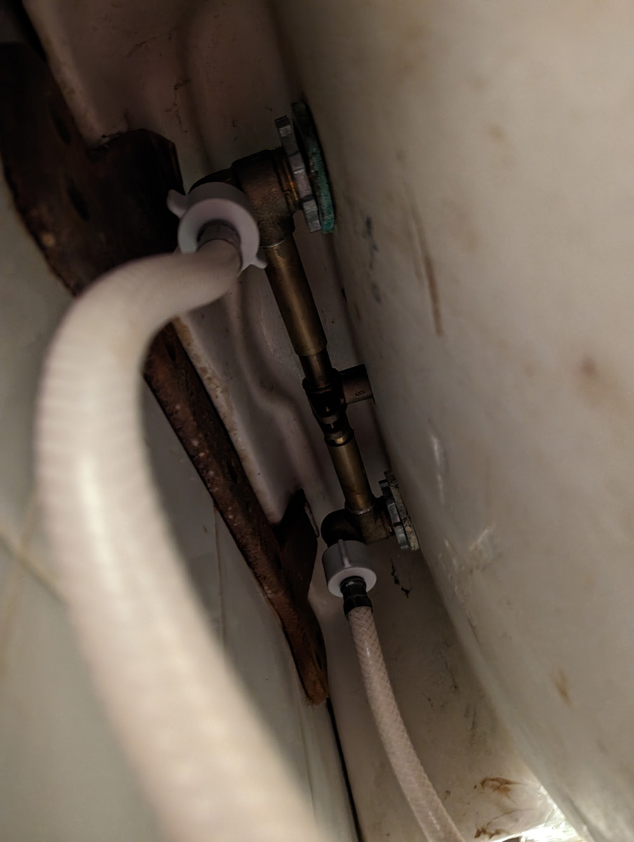 afterwards my father and i started trying to fix the various plumbing issues around the house, starting with the kitchen. it has a standard ball faucet which has been leaking for weeks. the first step was to turn off the shutoff valves. that's when we realized the cold water works, but the hot water didn't. the issue is most likely the washer had fallen off at some point. unable to shut off the water, we couldn't fix the ktichen faucet, so moved on to our second plumbing project.