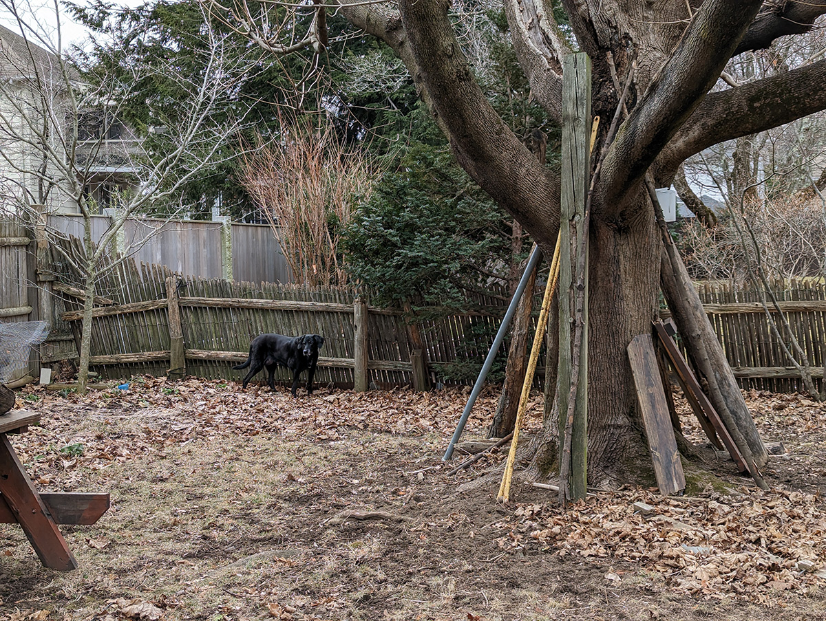 hailey was at my parents' house when i got there late this morning. for some reason she now gets afraid when i try to pet her and will run away. however, she insisted i take her out into the backyard, which is what i did. i was told she had problems going up and down the stairs but she was fine.