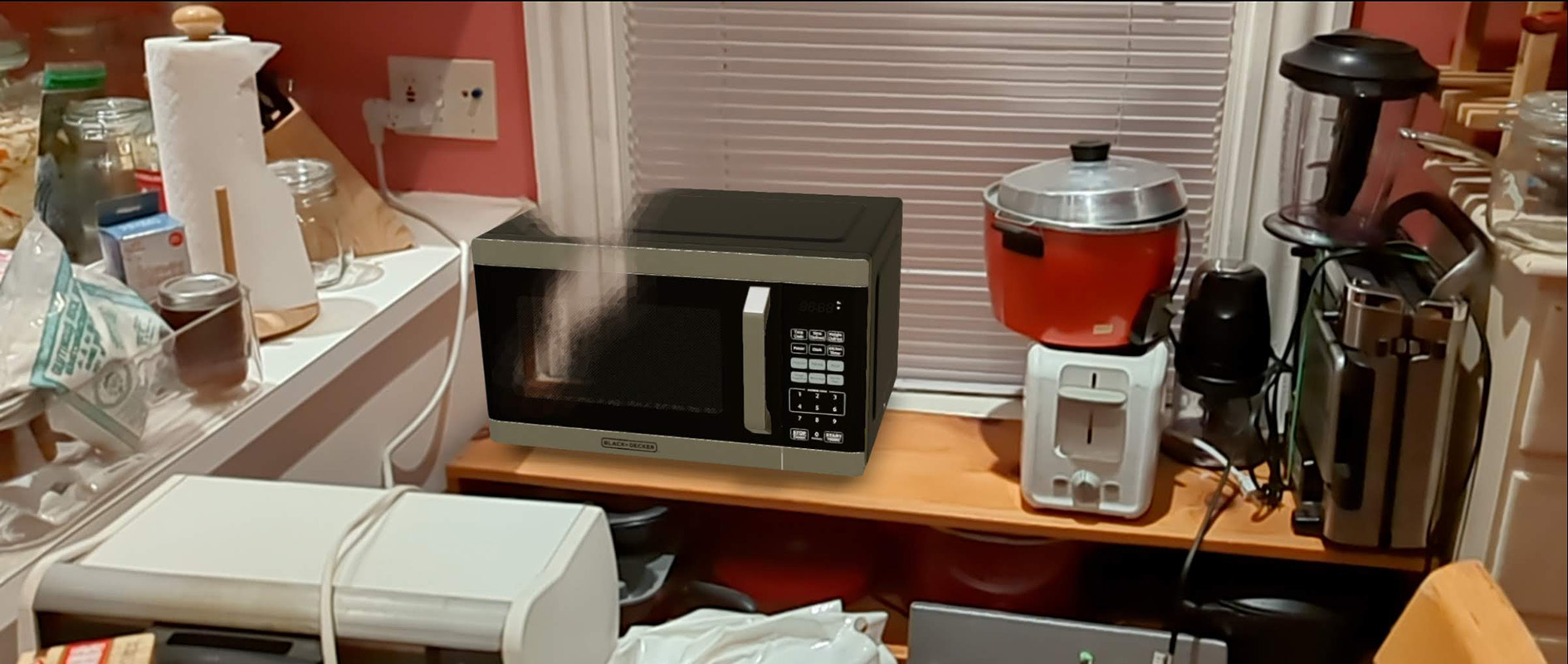 what also sold me on the black+decker microwave was a feature on the target website to see the oven in augmented reality. using the phone camera, it then mapped your environment before placing a 3D model of the microwave into the image, at which point you can rotate and move it around. it's not an exact science and sometimes it placed the item in the wrong position, or there was some ghosting effects, but at least i sort of got an idea the size and how it'd look in my cluttered kitchen.