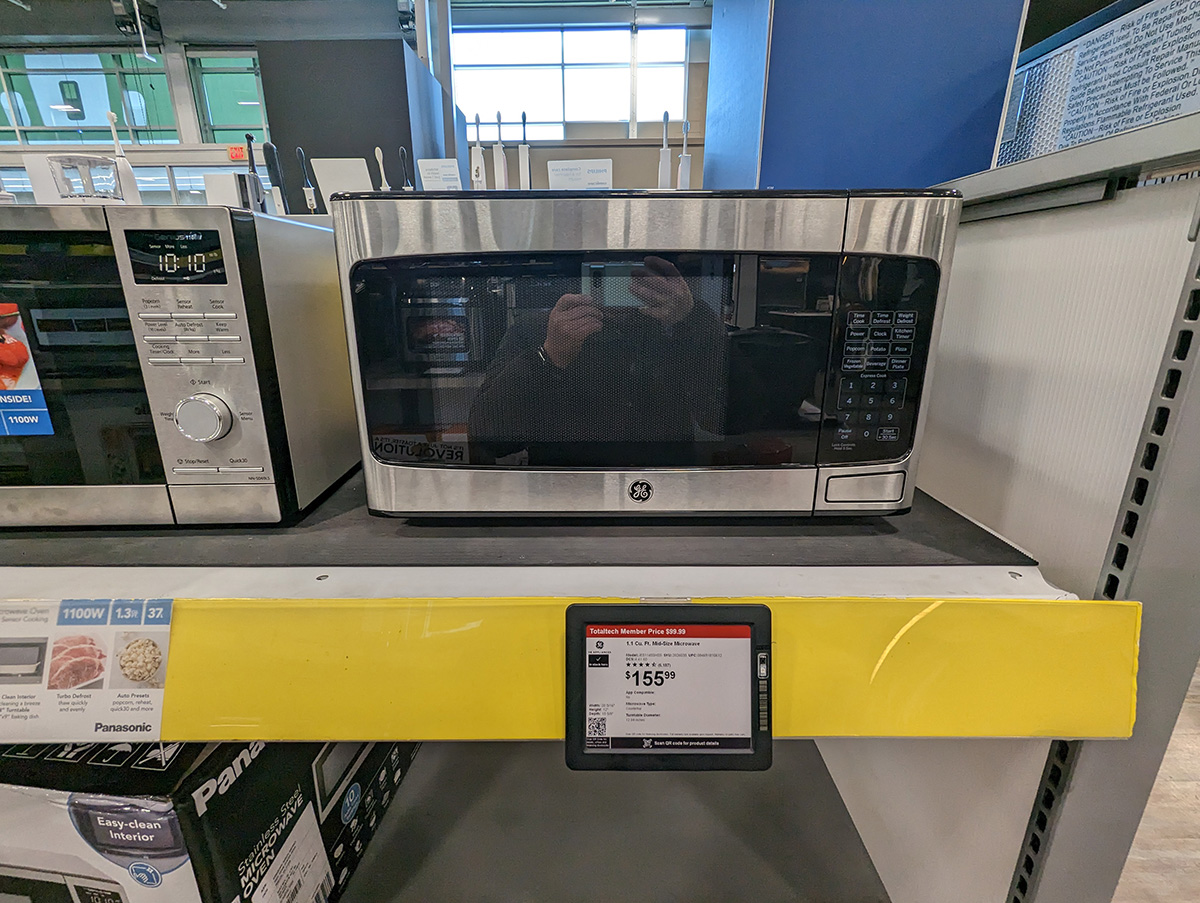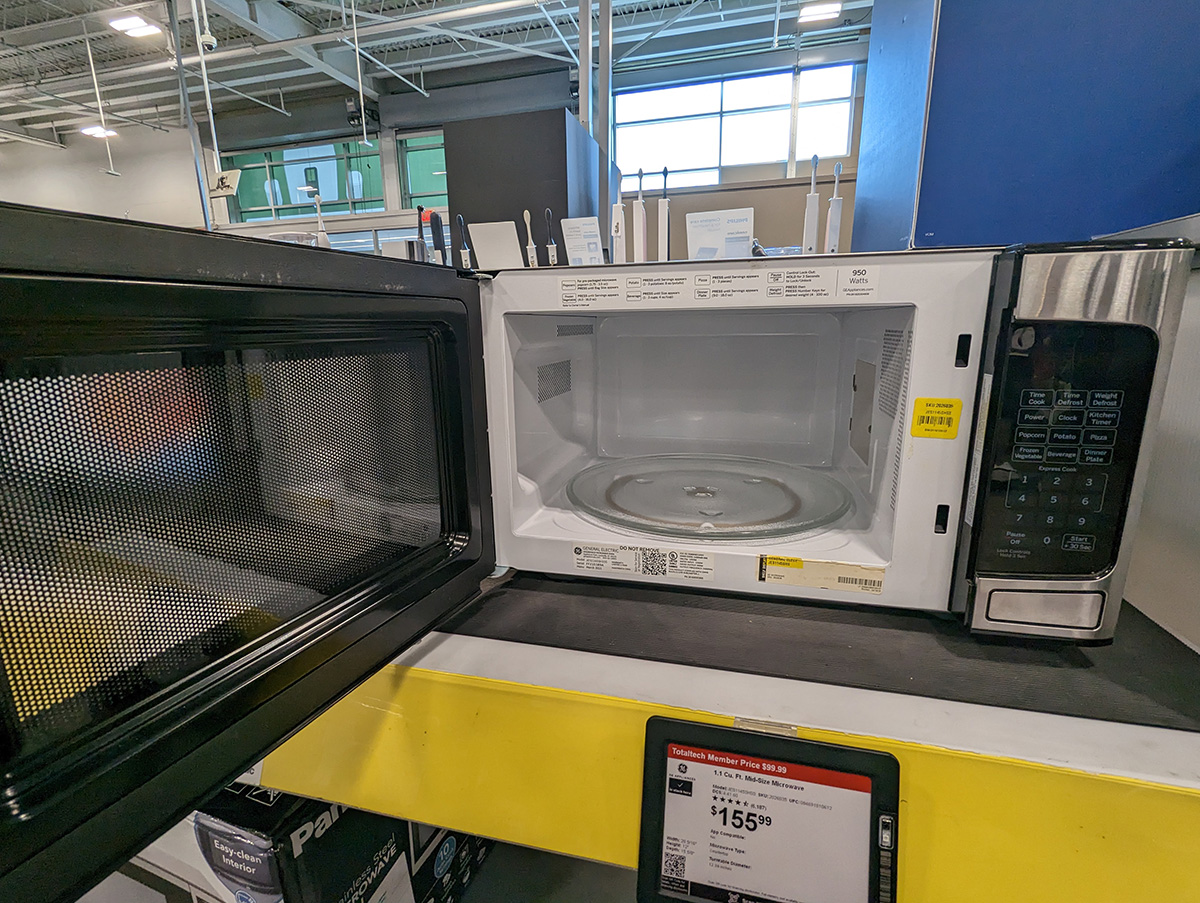 even though i parked outside of target, i went to best buy first, running across the parking lot. although i haven't been doing a lot of running in the new year, i still had a lot of stamina from maybe just bike riding, and ran across the lot effortlessly, not even winded. they only had a few countertop models. the most promising one was a 1.1 cu.ft. GE for $156. they didn't have any to sell on the shelves, but the website said the store had them available. they also had the breville smooth wave microwave, which is one of the most high end microwaves, much like breville's countertop oven. i tested out the silent closing door, it reminded me of those silent closing sliding drawers. i was surprised it was 1.2 cu.ft, i thought it was smaller from the online reviews i saw. at $400 it's way too pricey for an appliance i don't use all that often, besides reluctantly heating leftovers when i'm in a hurry.