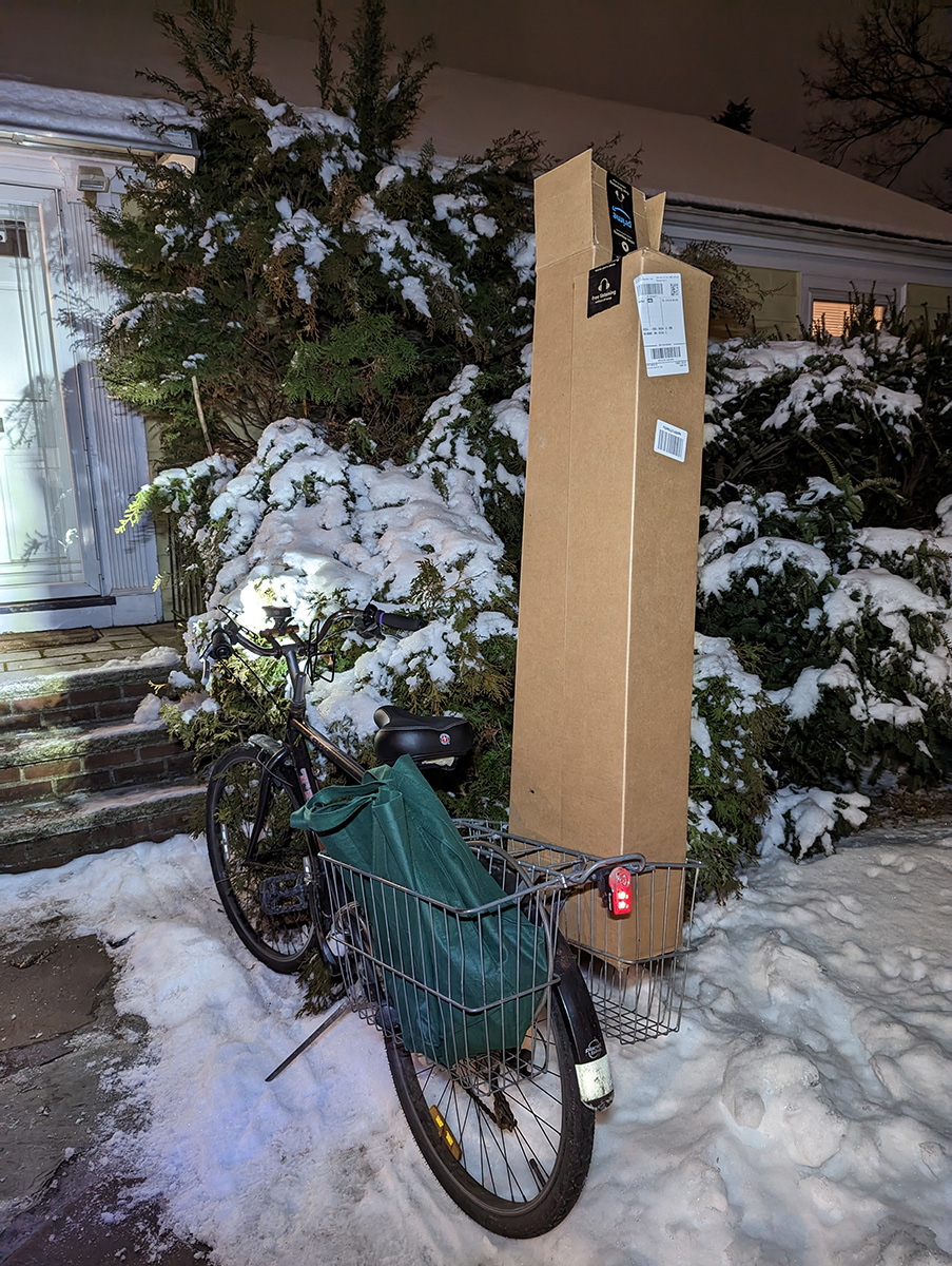 it was also an opportunity to get some bike riding in, since once we get snow on the ground, it takes a while for it to melt, and it's hard to ride in the snow and ice (although to its credit, cambridge and somerville have gotten better at clearing the snow off of the bike paths). before i left, my father came by and dropped off the broken extension pole for return. he'd been at the cafe since this morning, supervising the electricians. by coincidence, my neighbor renee was getting some electrical work done on her place as well; contractors were replacing her electricity meters.