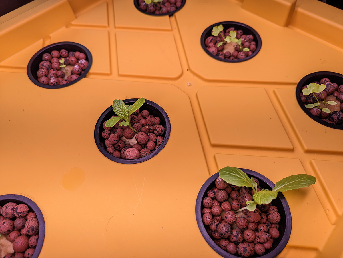 not just me, but my father has also noticed that the aeroponic plants don't seem to be growing very fast. i pulled out the net cups to check the roots, most of them have dangling roots now. one mustard green in particular - the one that seemed to be the healthiest - had numerous roots. i'm still waiting for the exponential growth to happen. my father thinks maybe the temperature is too cold in the sunroom. i think they just need more light. when i did my hydroponics experiment, i was using a 120W led light. the lights we're using now is only 40W combined.