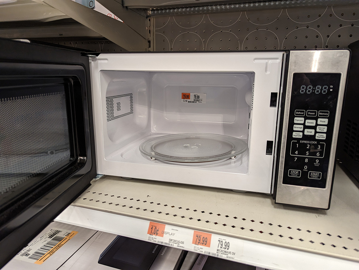 one thing i've noticed is the controls for many of these microwaves all seem to be the same, like they're standardized across various manufacturers. instead of searching some more, i decided to go ahead and buy the black+decker. what made me change my mind was i looked up the microwave i had before this most recent black GE model broke down: it was a white samsung microwave. surprisingly, it was just 0.8 cu.ft. but i don't remember ever thinking it was too small. i only got the 1.2 cu.ft. GE microwave ($25) because my roommate at the time blew up my samsung oven (which i managed to fix eventually). if i was fine with an 0.8 cu.ft. microwave, i'll be fine with an 0.9 cu.ft. microwave. plus, if i really don't like it, i can always return it at target.