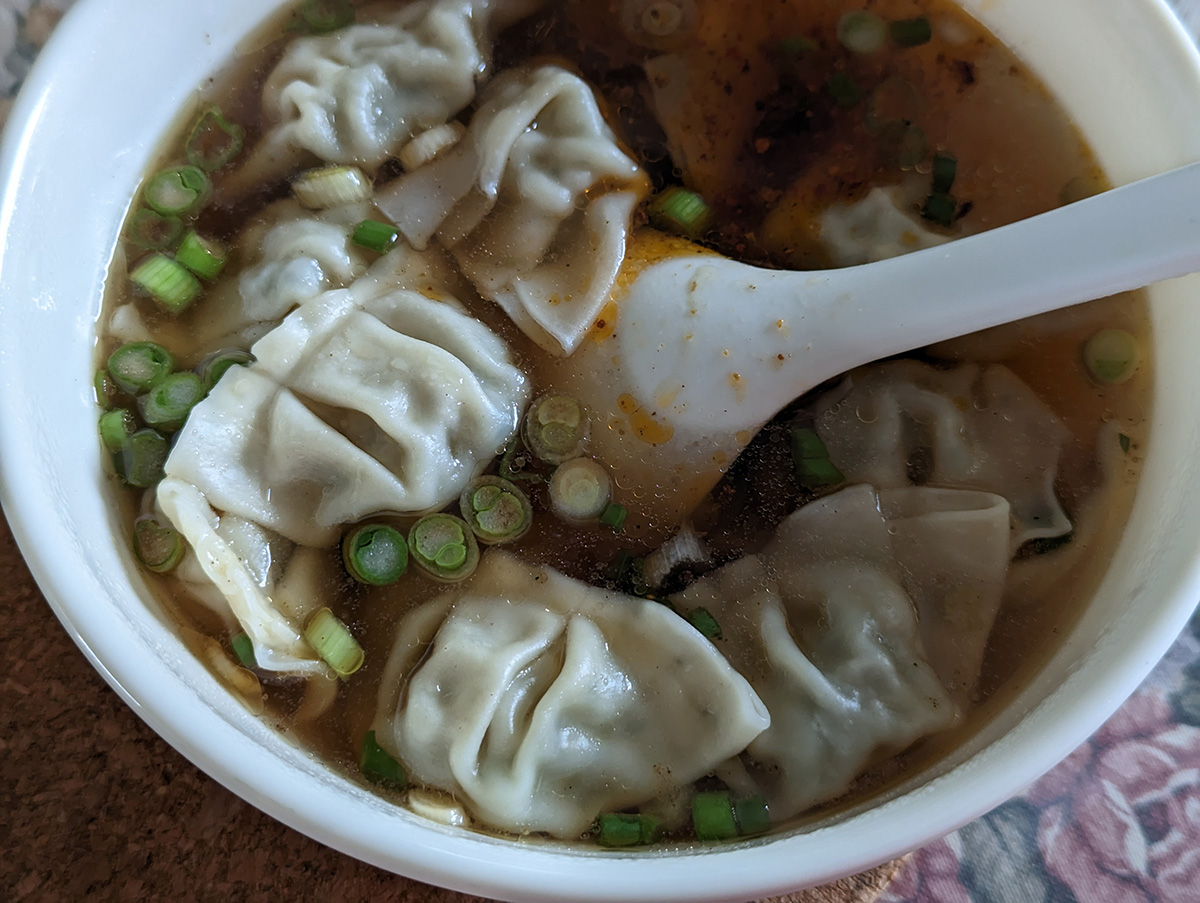 i left for belmont around 12:30pm, arriving about 12:50pm. my father had been home briefly for lunch, my mother made some fried wontons which he didn't finish. for me she made soup wontons.