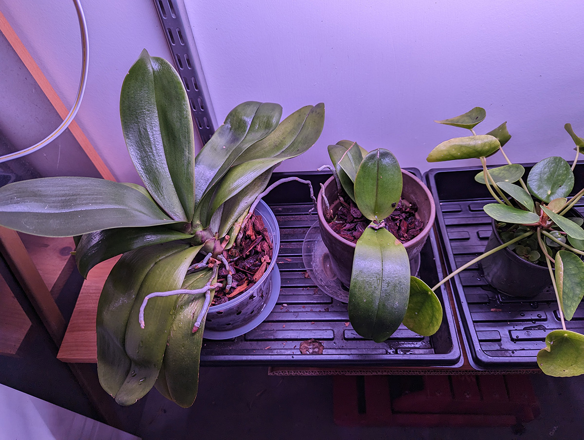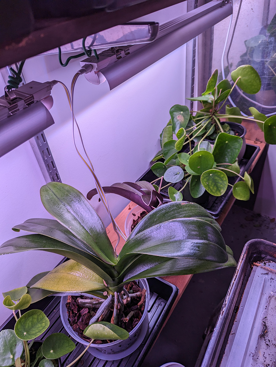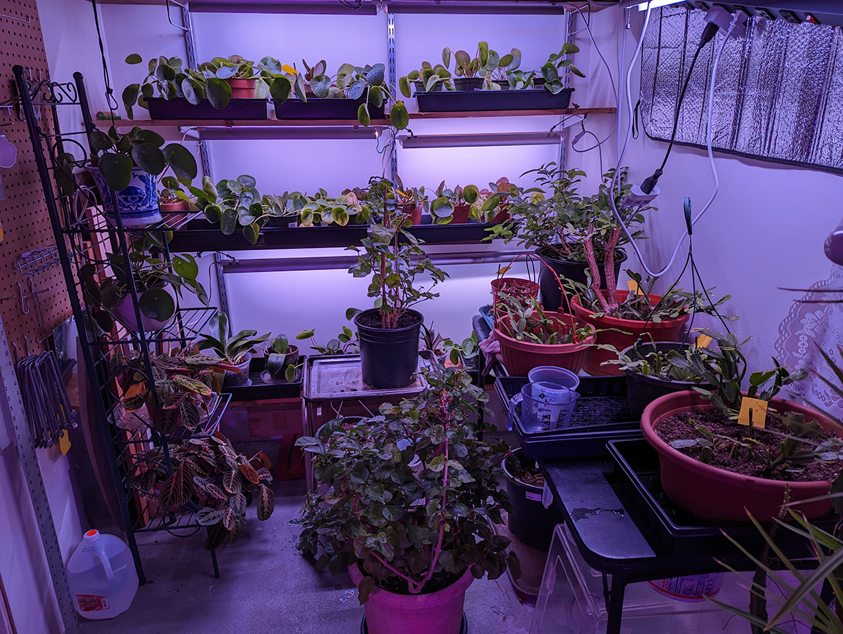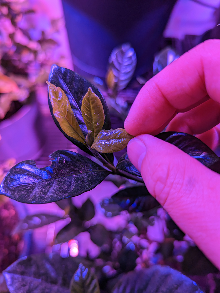 around 4pm i went down to the grow room to water the plants. most of the plants i could've probably waited another week to water, but many of the pileas were bone dry with their tiny pots. it's pretty evident that pileas growing in bigger pots are healthier, while the small potted ones are all drooping. i examined the gardenia, and i'm certain that the newly emerged leaf buds are in fact future flower buds. seems like every terminal bud is forming into a flower bud. we may just get some flowers this season.