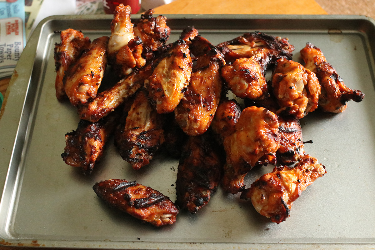 my mother made noodles for a late lunch. after we finished eating, my father and i went outside into the backyard to grill some frozen buffalo wings, to get ahead of the rain that would be arriving around 4-5pm. ever since we discovered frozen uncooked buffalo wings, we can never go back to drumsticks. wings are just tastier.