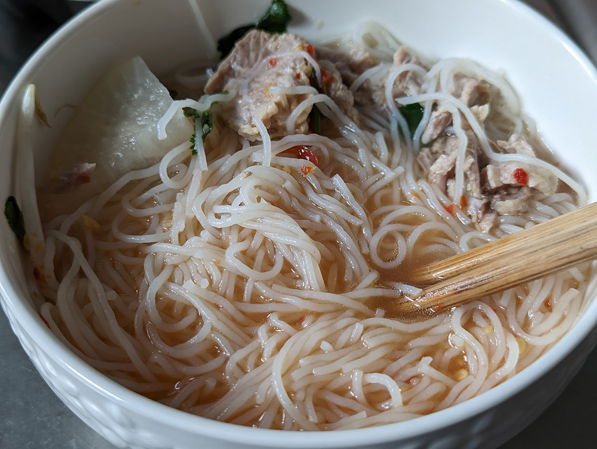 i rode directly from the supermarket to the cafe, arriving by around 10:50am. because my sister rescheduled her catered meals to thursday because of the snowstorm (which ended up not happening here in boston), she wasn't here today so it was a quiet and stress-free workday. there was just the right amount of busy, and i was free by 1pm to have some rice noodles for lunch.