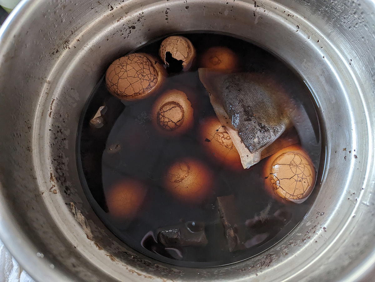 things i did today: made 30 tea eggs; made a new batch of black noodles; sorted a box of dried chinese noodles; made 5 boxes of ice cubes; reconfigured one of the front plugs that run both a refrigerator and an induction cooker; washed a non-stop stream of dishes; chopped up some fresh scallions; refilled the dark soy sauce; refilled the tonkatsu sauce; prepared a new batch of edamame beans; cooked some dumplings.