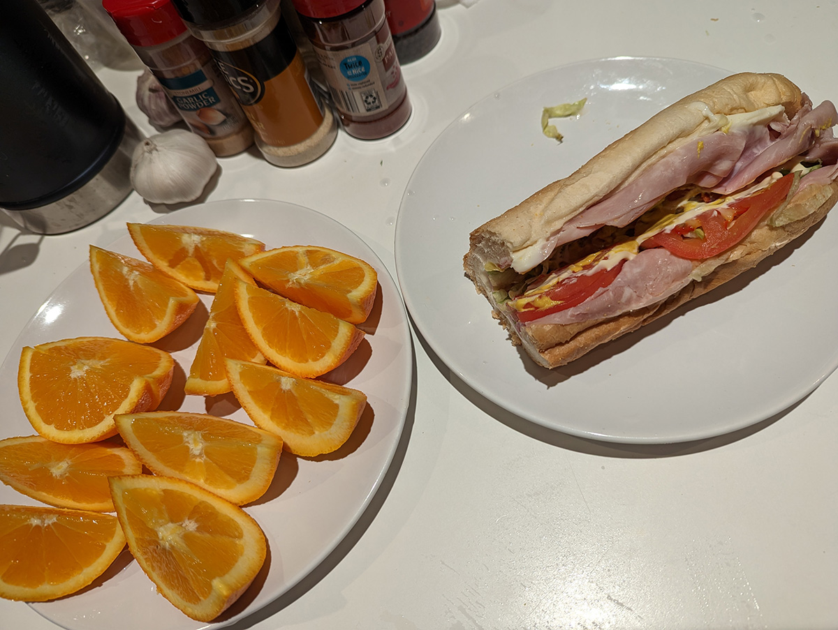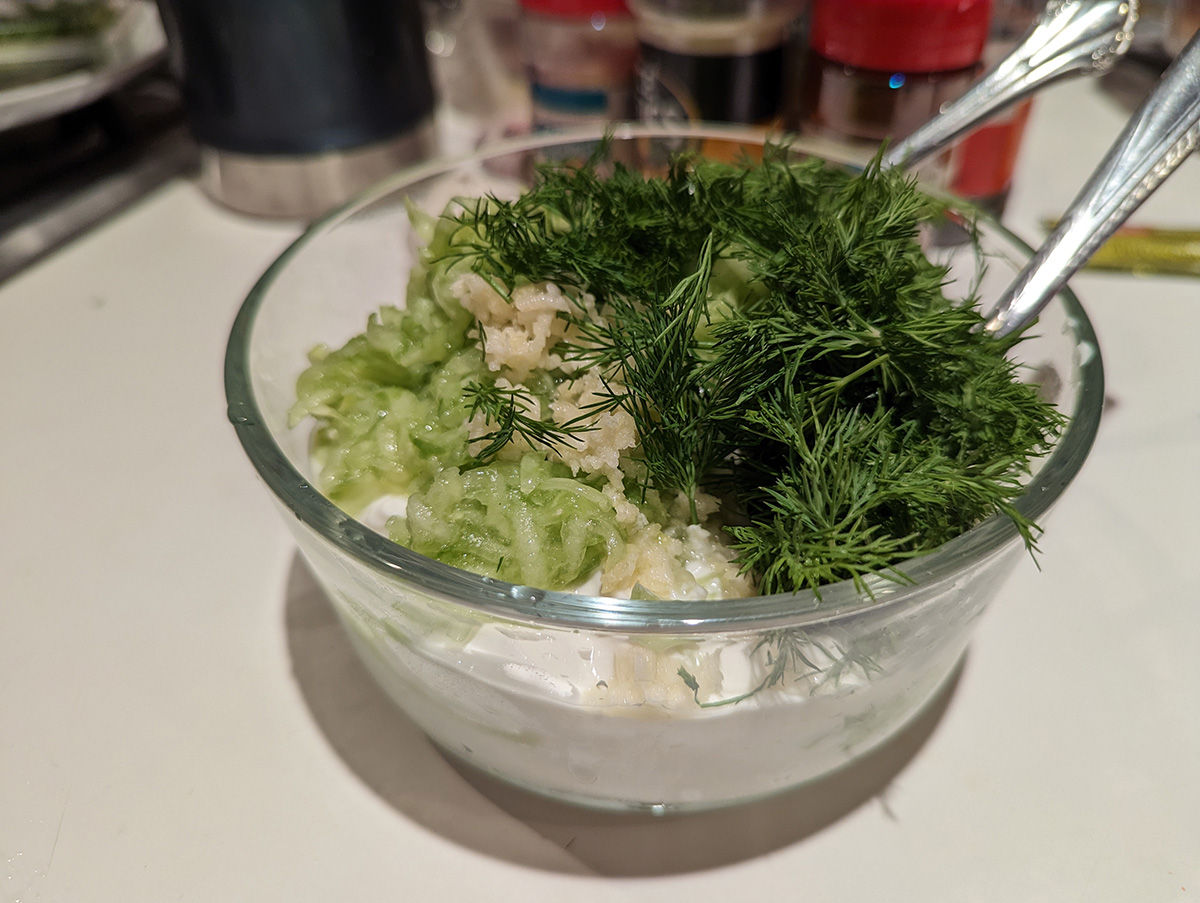 it was nearly 4pm before i finally had lunch, the ham & cheese sub i bought from market basket yesterday but wasn't able to eat. i only ate half, saving the rest for dinner. i also made another batch of homemade tzatziki, to bring to my parents tomorrow.