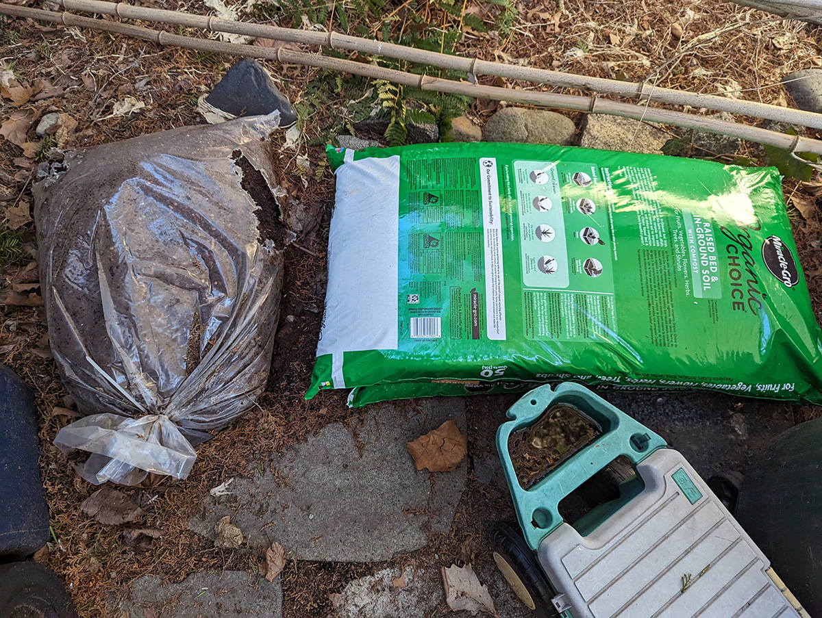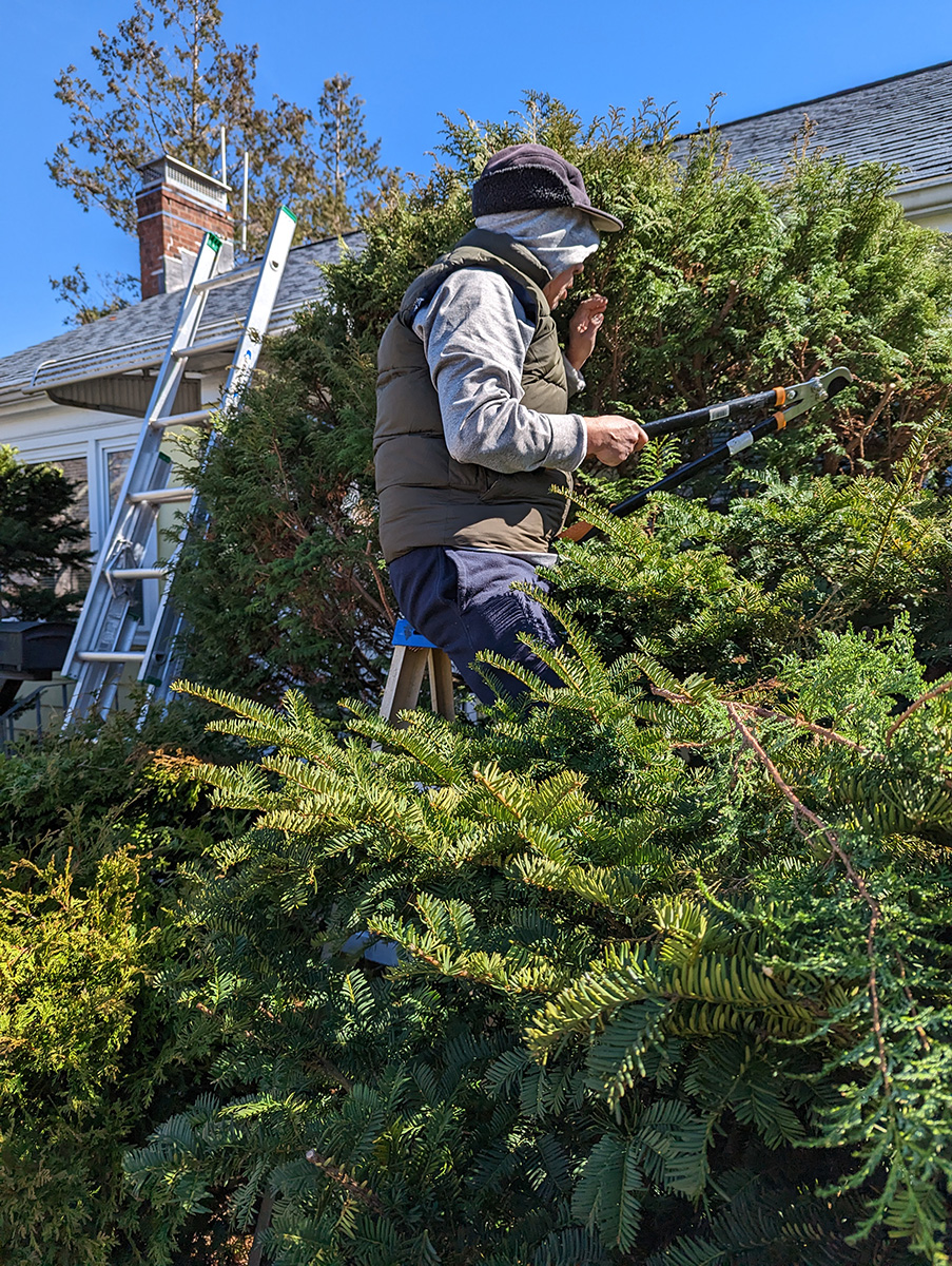 my father was all bundled up, while i kept removing my layers: first the jacket, then the pullover, until i was just in my t-shirt. temperature was still in the mid-40's, but it felt warmer in the sun, especially while we were working. we finally finished by 4:30pm.
