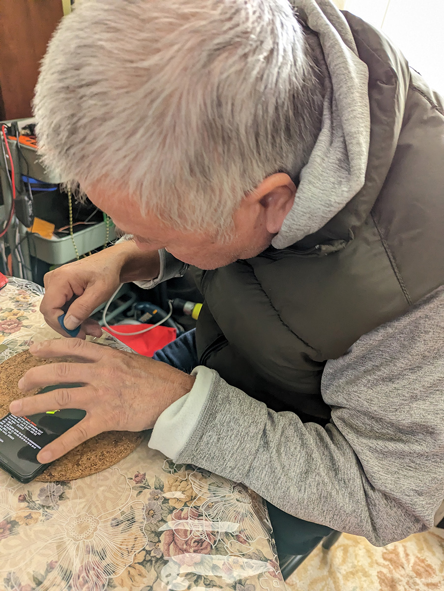 getting the phone opened was the hard part. my father thought we could easily remove the battery, but i told him we'd have to remove all the components first before we could get to the battery. just as a test, i connected the new battery to the phone, and tried turning it on (with the phone still partially disassembled). not only did it power on, but it also charged the new battery. that meant the old battery was bad.