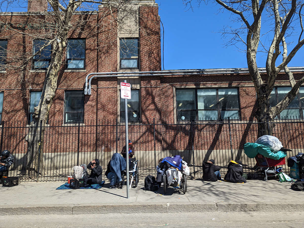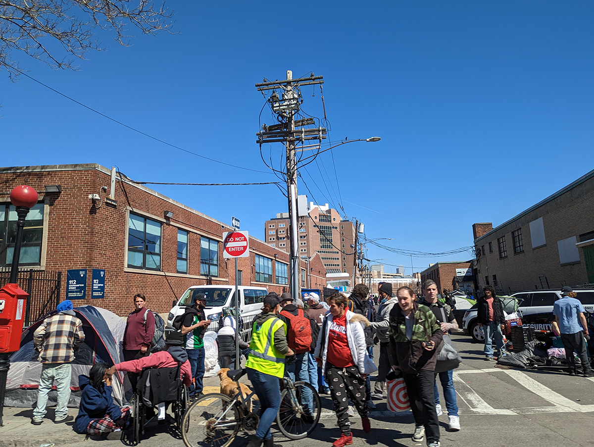 we left by 11:30am. the entrance facing methadone mile was opened so we figured we could leave from that end, but as soon as we turned the corner, we were surrounded by a mob of homeless and drug users. a police officer came out and told us to go the other way.