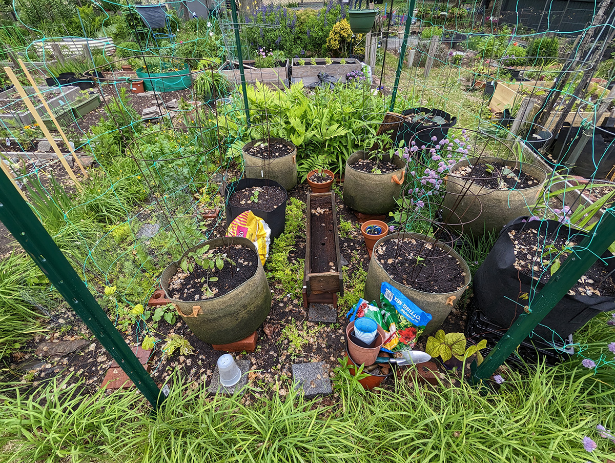 i walked down to the community garden with a screw pepper. david was there, just finishing up with his watering. i saw ann briefly walking out from the park but she didn't stop to say hi. i planted the pepper (the previous pepper wasn't doing so well and had basically shriveled up) before watering. i wasn't sure how smart it was to water so late, with the temperature tonight once more dipping in the upper 40's. just one more of this, starting this weekend the night time temperature will be in the 50's.