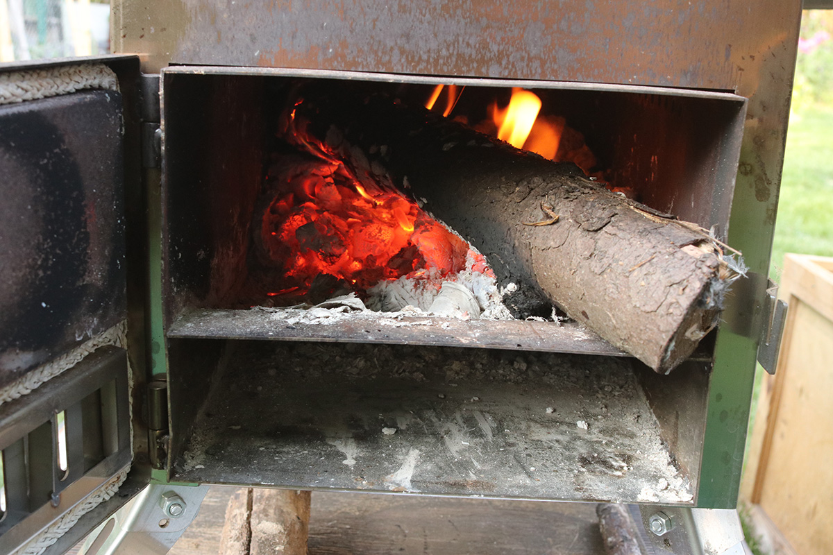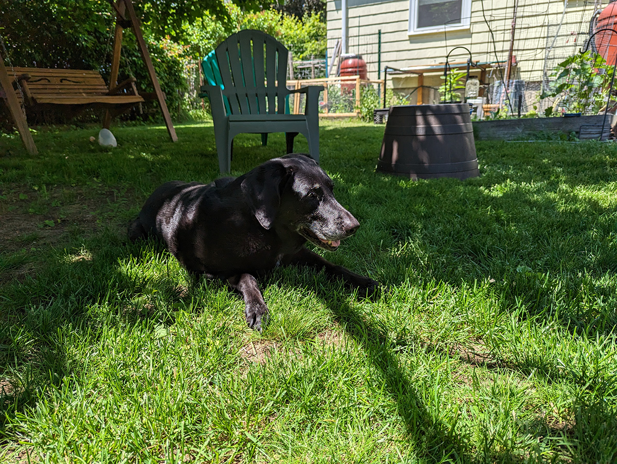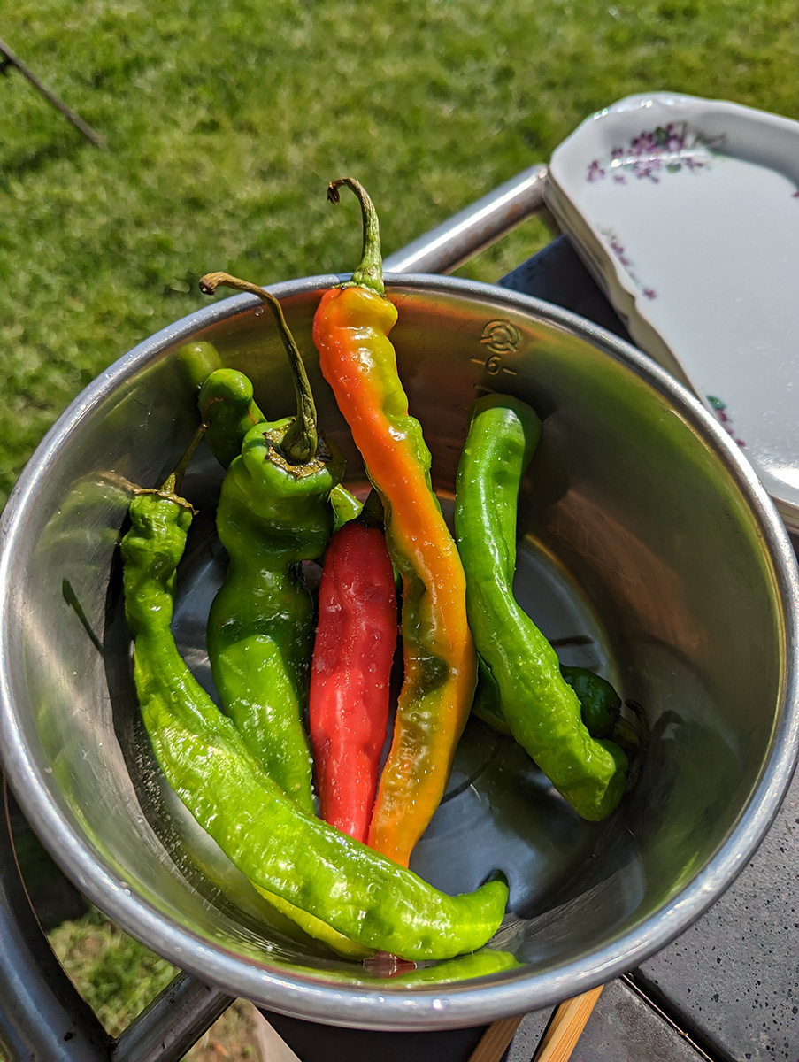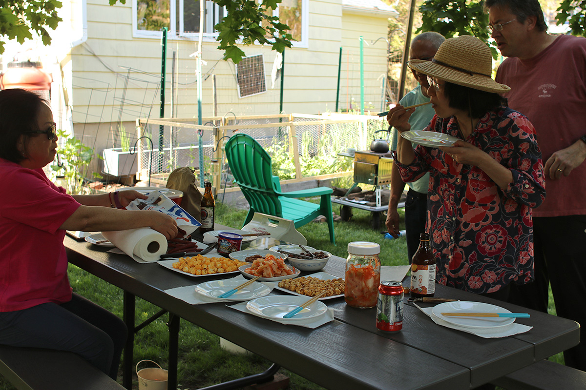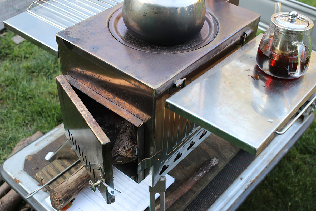 my father moved out his stainless steel camping stove and fired it up in the backyard underneath the shade of the maple tree. later he burned some wood matthew gave him and something smelled really nice, either hawthorn or spruce, but it had a fragrance reminiscent of chinese temple incense (my guess is the spruce). we took the collapsible picnic table from the garage and set it up in the backyard underneath the maple tree as well. this was actually our first time using this table after getting it last year.
