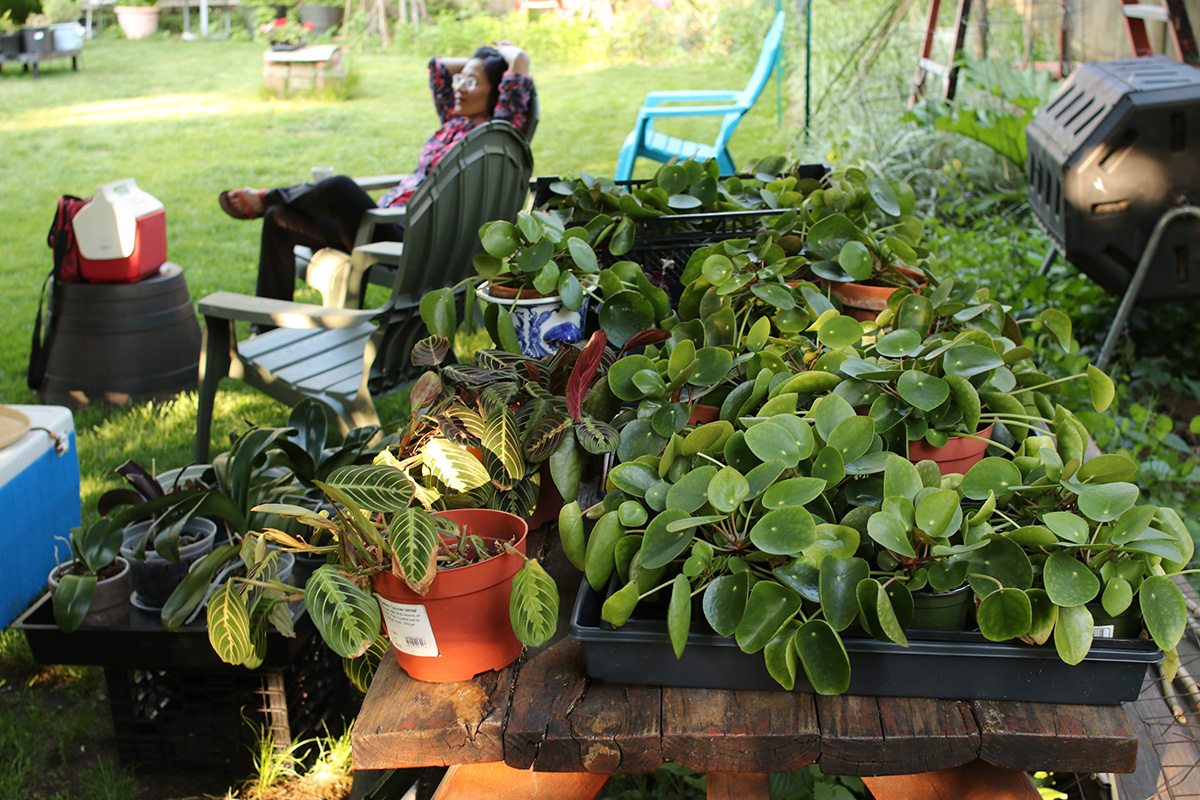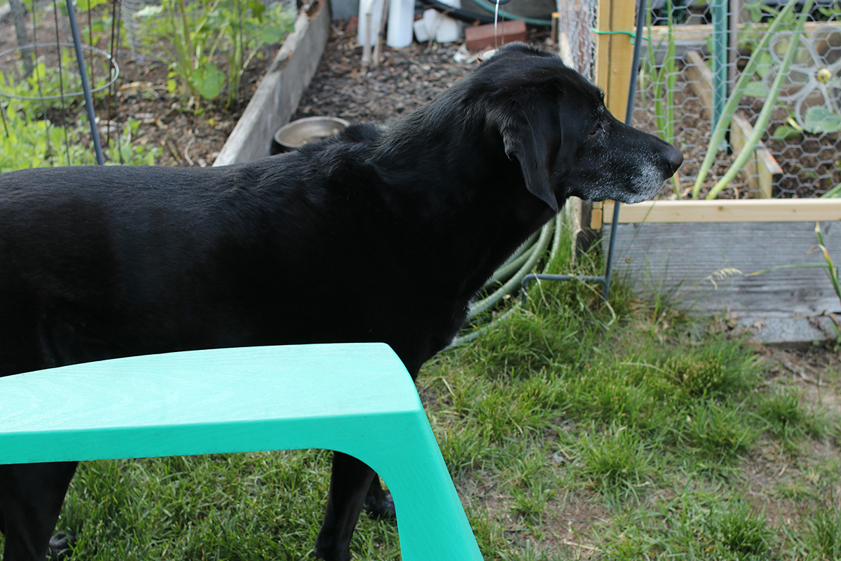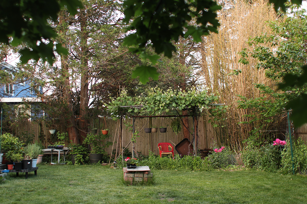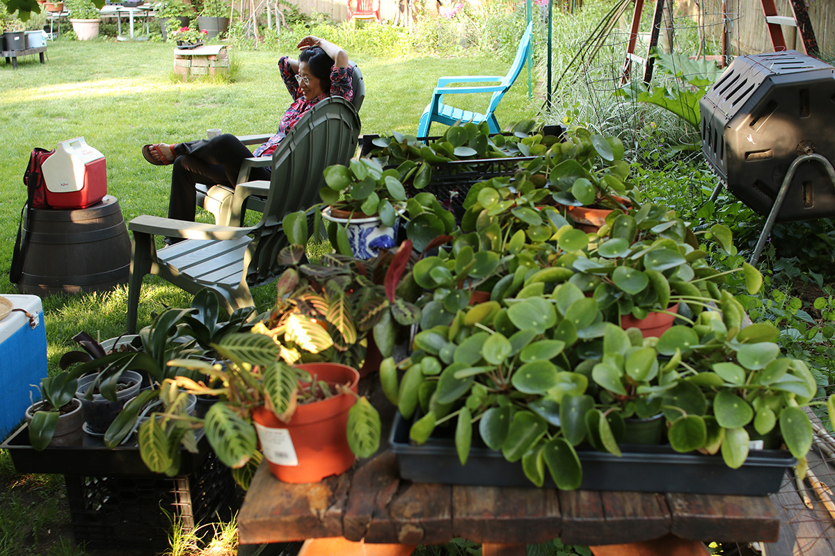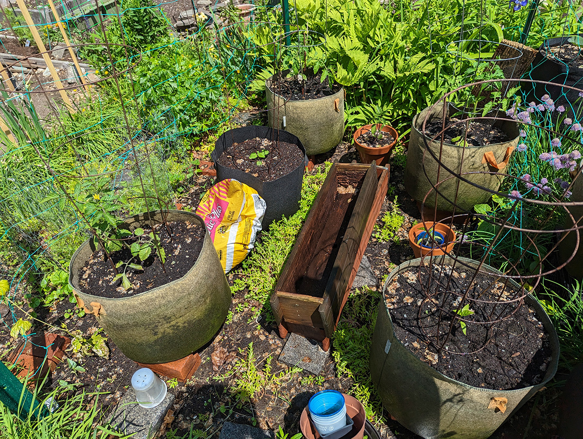i found a hair tie on the ground and tied up my hair - which by now is plenty long - into a ponytail. a neighbor tossed out a bunch of unused 16 oz. plastic solo cups which i took so i can use them next season as pots.