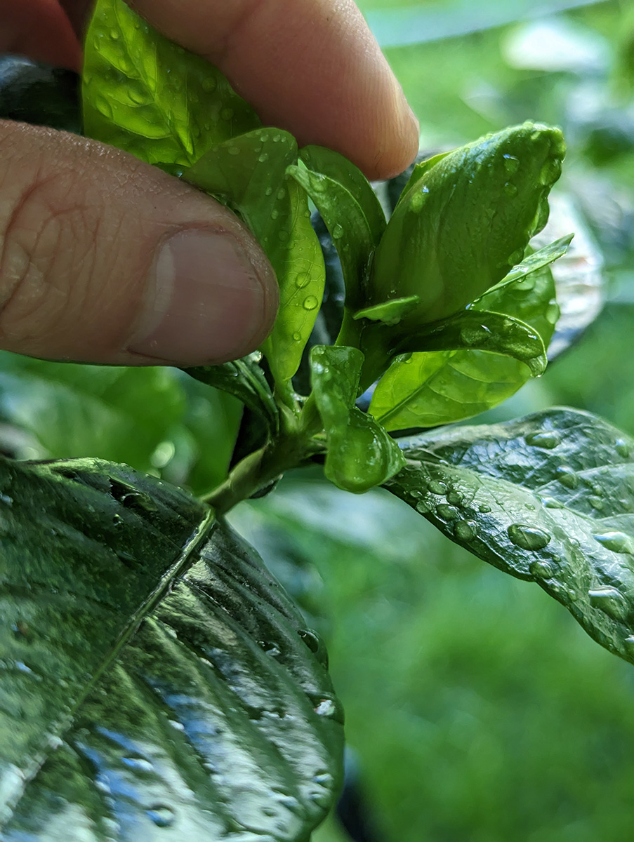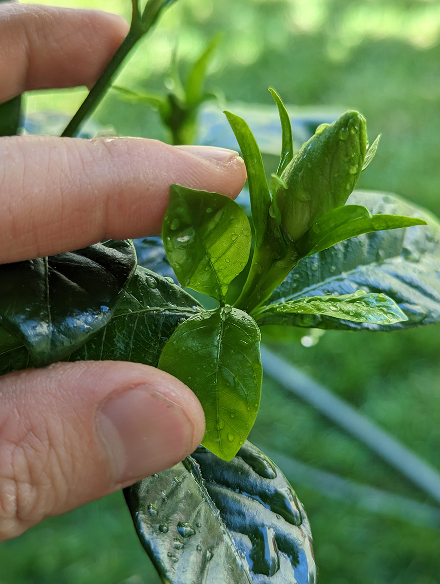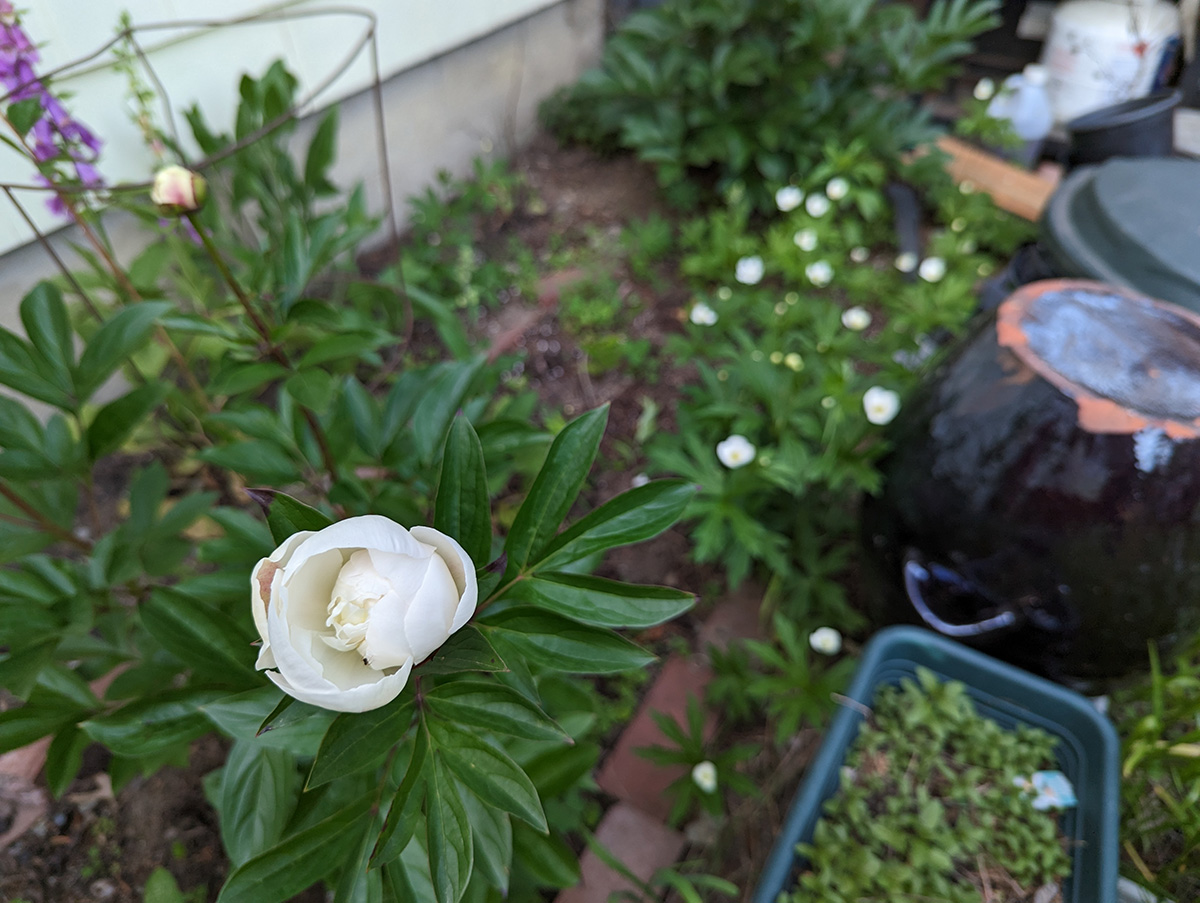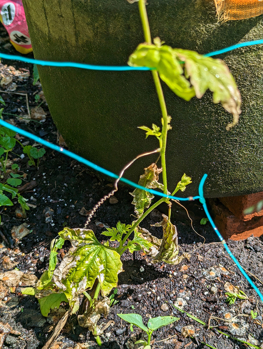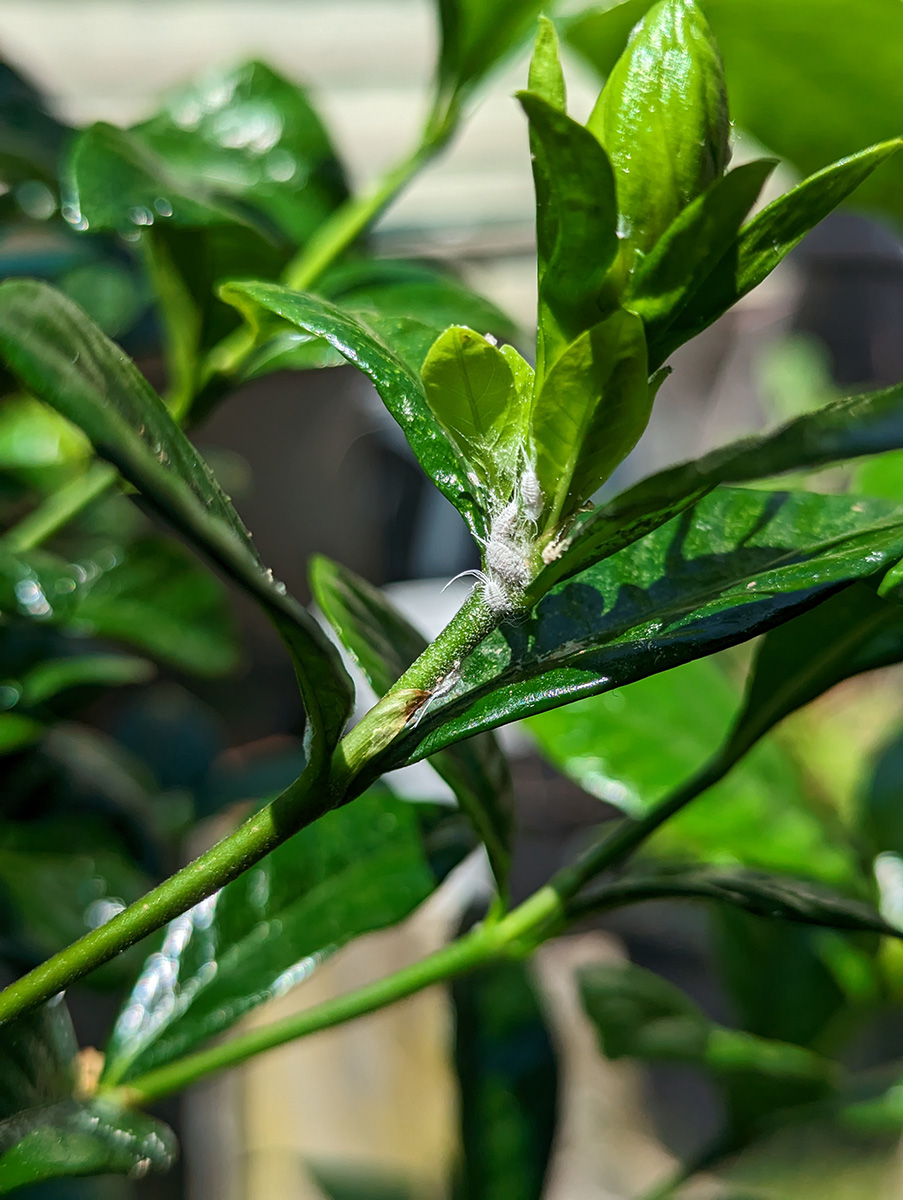 i also moved out the gardenia - the last remaining plant still growing indoors - after discovering mealybugs on the flower buds. i sprayed it with neem oil before rinsing it with water. i also watered it with fertilizer-spiked rain water, with what remained i used to water the jasmines. i planted the two columbines and a lavender underneath the grapevines, added compost to the holes before sprinkling some slow release fertilizer pellets.