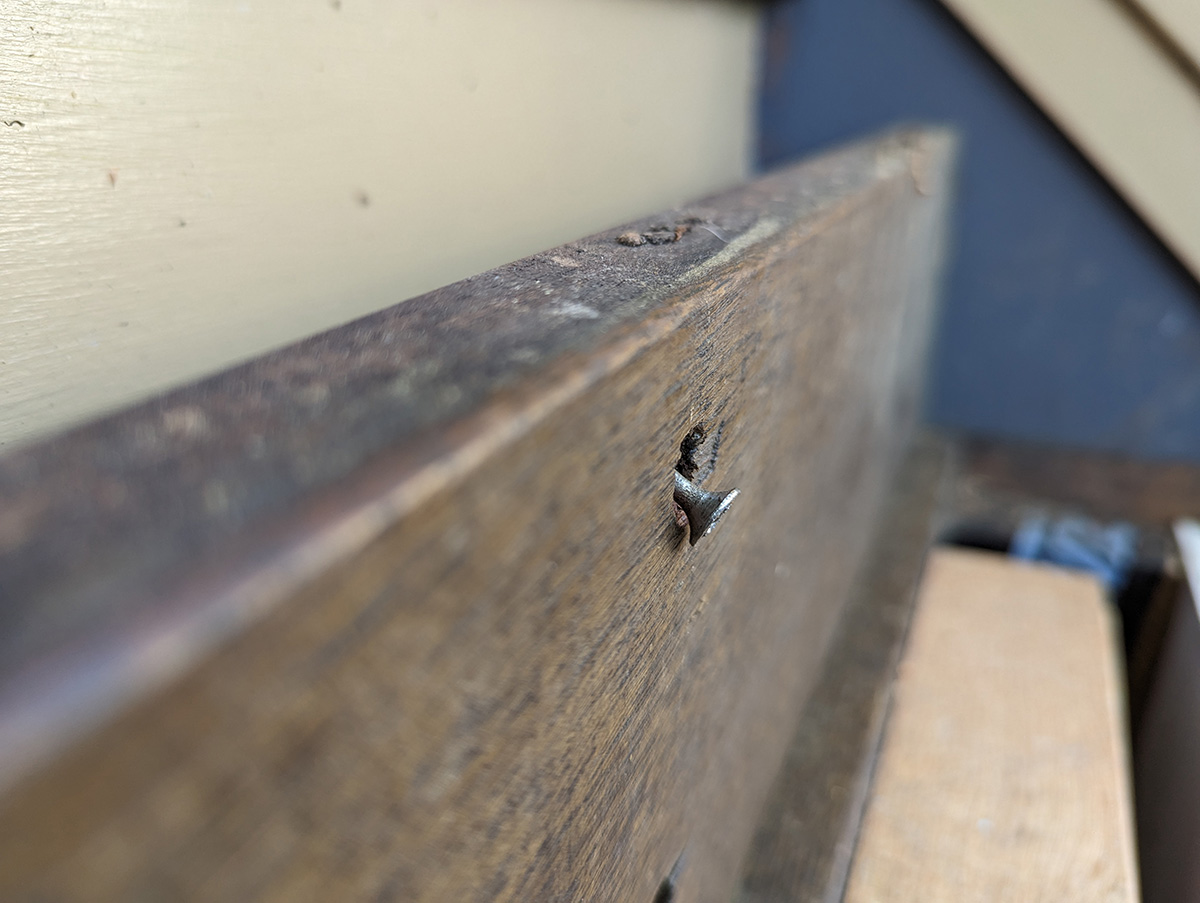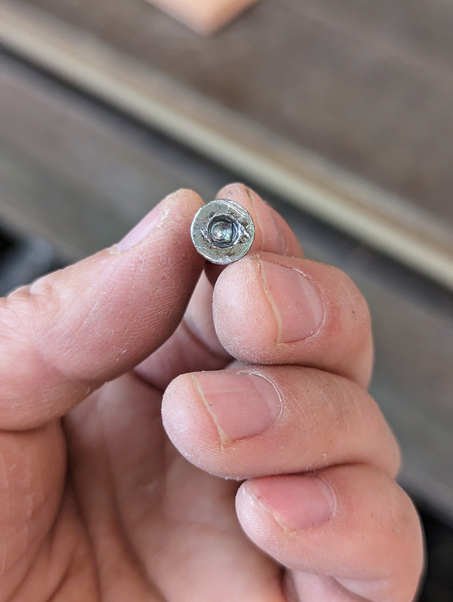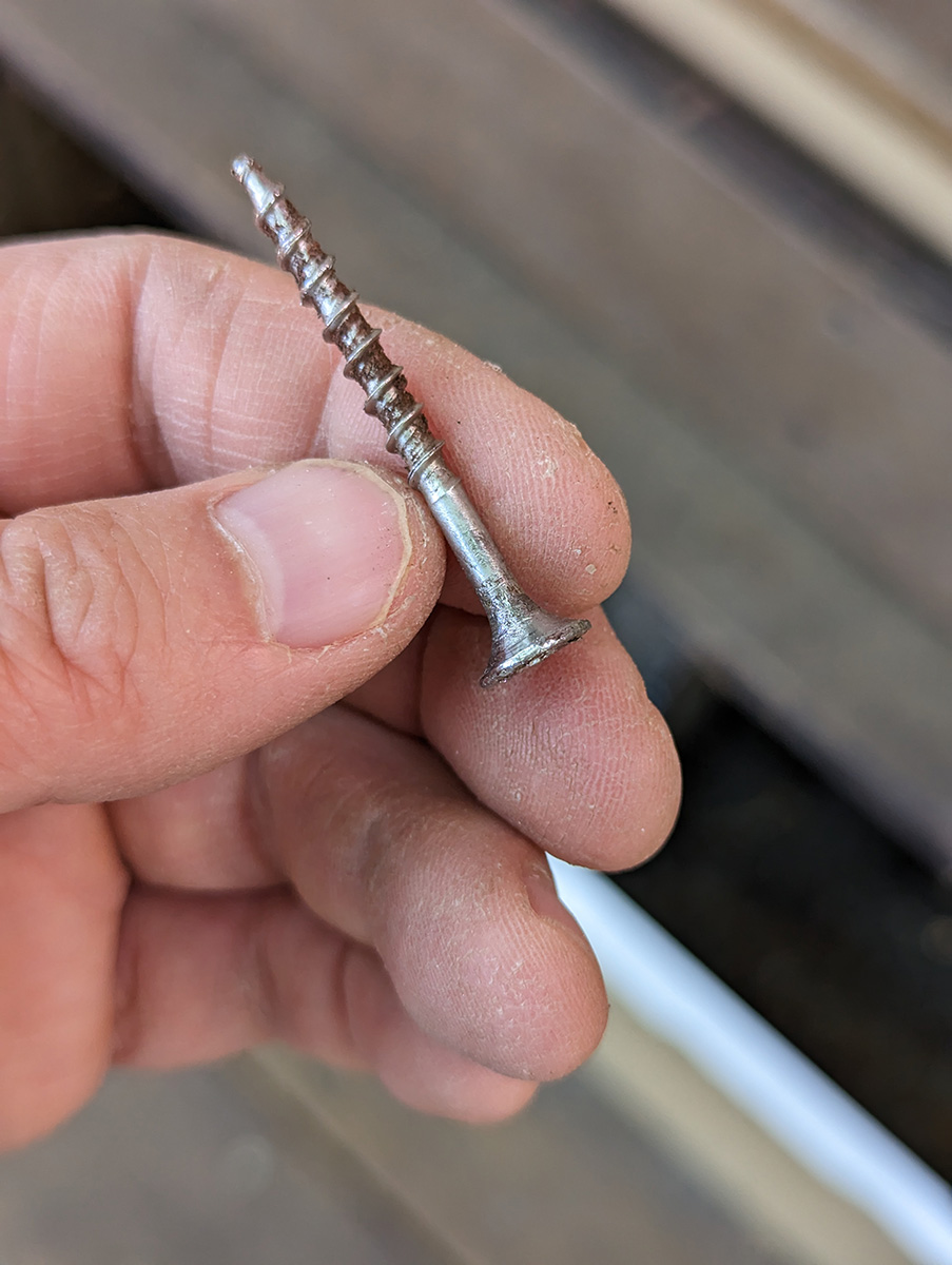 i woke up this morning and went to work on removing the last remaining screw from the loosen front step. the screw extractor wasn't working at all on account that the screw had been driven in at an angle. i could understand why the handyman did this - since the original screw hole wasn't providing any purchase after he put the screw back in place - but it made a simple extraction of the screw nearly impossible. i ended up digging out the edge of the screw head with a small screwdriver to give it some clearance. i then turned the screw from the exposed screw end until it started coming out the other side. once enough of the screw was exposed, i continued turning it with a pair of pliers from the top side until the screw finally came out. i need to get some supplies from home depot tomorrow and hopefully fix the loose step before jeff returns on tuesday.