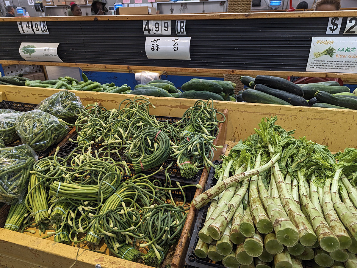 i went to c-mart first, where they had a sale on longans for 4 lbs/$10. i ended up getting two bags, as well as a sleeve of garlic ($1.50), and some oranges ($1.48/lbs.). they also had lychees for $2.50/lbs. (cheapest i've seen them this season), i bought a small bag. next i went to ming's market, where i got a taiwanese cabbage (50¢/lbs.). here too they had a sale on longans, same price (4 lbs/$10), so i bought yet another bag, as ming's market's longans seemed bigger.