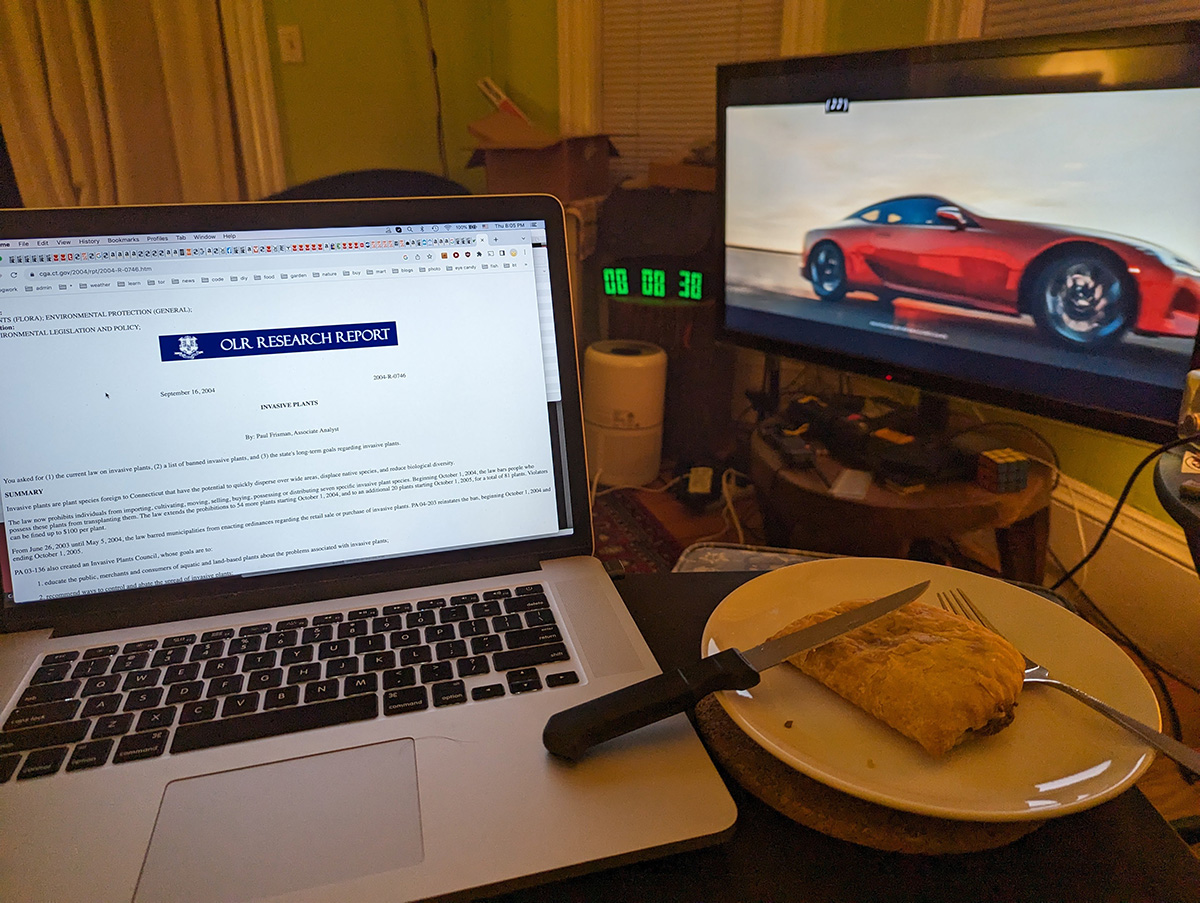 while i was taking photos (with my phone, my dSLR, and my 3D camera), i felt a rumbling in my stomach and then suddenly felt a strong urge to use the bathroom. i thought i could power through it, but the grumbling got worse, to the point where i thought i was going to soil myself. i climbed on the bike and gingerly pedaled home. sitting on the bike saddle alleviated some of that sensation, but it didn't look good, and it felt like maybe i'd already pooped my pants, and was now just mashing everything into the seat. i didn't think i'd make it and thought i might have to use the cafe bathroom, but the diarrhea sensation subsided, to the point where i could probably make it home after all. so i pedaled, afraid to stand up, less some driver behind me spot the large stain on my shorts. i felt drips running down the back of my legs. this would not end well.