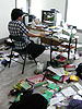 now, he's had ample time to accumulate, so his entire apartment is just cluttered with things. books, videos, cd's, and then boxes and containers containing more books, videos, cd's. it's kind of scary because i think, if i lived on my own, will this happen to me as well? i like to think no, but my tendency as a guy is to never clean up and dirty up an apartment as quickly as possible. i guess we shall soon see.