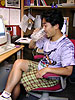 * this batik t-shirt i actually bought in dunhuang, china last year. it has an aspara angel on the front and the chinese characters for "dunhuang" on the back. if people knew how far i traveled to buy this t-shirt, maybe they wouldn't have made fun of my outfit!