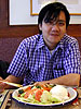with 10 minutes to kill, we had no choice but to pretend to be interested in the myriad of used and new minolta printers that's strategically dotting the harvard inn. minolta agents are everywhere and if you seem to show the slightest interest in a particular printer, they will descend up you like highly trained ninja commandos and start going through their little sales pitch extolling the virtues of so-and-so minolta printing device. it's all a blur to me, really. within the next 10 minutes amanda and i are pulling an academy award nominatable performance acting like we're genuinely interested in leasing or buying a heavy duty industrial strength minolta printer. sorry boys, i try not to print stuff out. besides my top secret work (which strictly forbids physical copies to be made), i also think paper kills trees (i thought paper kills rock, and rock kills scissors, and scissors kills trees). that's what i want to say, but instead my face is fixed into a big smile of wow excitement and phrases like oh i see and that's cool come out of my mouth as if on cue.