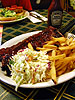 30 minutes was just too long a wait, so we decided to go with our original restaurant destination, the ground rounds further down the street. there was no wait at the ground rounds. for dinner i had a serving of baby back ribs, while julie had the crab cake sandwich. it was kind of uncomfortable sitting in the restaurant with the high air conditioning because both julie and i were still in our wet clothes from the waist down, so after a while it felt pretty chilly. there was a ceiling mounted television tuned in to the red sox vs. bluejays game, and julie and i were able to have a nice meal while watching baseball and talking red sox.