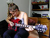 now afterwards we headed back to laurie's place to wait for her friend mervin to be done with his weekend childcare duty and come join us for the movie. in the meantime, she demonstrated her newly learned bluegrass music. i enjoy sharing in the hobbies of others. i may not understand it -- and i don't understand much about guitars -- but it's fascinating to see someone be somewhat passionate about something that's interesting.
