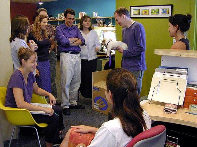 i took julie to the office because i had to go back and grab my stuff. i gave her a quick tour, she grabbed a courtesy srm ball, and then we left to go visit the gang at the cellar on mass ave, celebrating rebecca's new job.