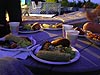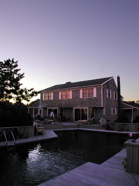 when everything was finally done, we had a great dinner outside on the deck. we ate under the dim incadescent glow of the porch lights and the illumination of the full moon in the dark sky. near the horizon, there would be an occasional random burst of fireworks (megan, you weren't lying!) celebrating some unknown occasion.