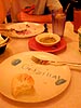 the plates were also special as well, each one unique with what appears to be children's doodle on the face of the plate. mine said "godzilla." when our waitress arrived, i ordered a medium pedro martinez pizza, which is steak tips with carameled onions, with my own personal addition of basil (which i couldn't really taste)**. i finished about half before i couldn't eat anymore. one of the things we talked about during our dinner conversation was words that make us uncomfortable (same discusssion we had on the hampton monday afternoon). words like moist or panties or crevasses. julie tried to get me to squirm by blurting out inappropriate words in the hopes of making me wince. julie was also enamoured with the word "toastbone" and couldn't stop praising the ingenuity of that compound word.