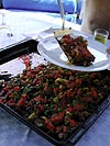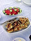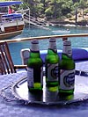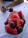 for lunch, salad and vegetarian lasagna, washed down with turkish beer (i just had coke and water). dessert, watermelon slices and figs.