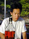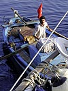 what would later become a morning ritual, the bread man came by our ship on his rowboat. apparently the locals know this region is a hot spot for vacationers, and there's a booming business of people on boats coming by throughout the day selling stuff, whether it be food items like homemade bread or ice cream, or services like parasailing or water skiing. this one particular man we called the bread man, he had this most striking feature, grey eyes on a moustached face that looked like it was born frowning. he sold the most amazing bread though, and i'm normally not a big bread guy. his bread was so soft and tasty, it was more like eating cake than bread. and because it was freshly made, it was still hot when we bought it.