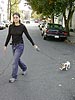 amanda didn't do any swinging because 1) she was taking care of j.r., and 2) she said she gets motion sick when she's on the swing. at this park we saw this little boy playing by himself. when he saw j.r. he approached us and asked, "does he bite?" and then proceded to pet the dog. kids love animals! later, j.r. was digging a hole in the wood chips in order to stay cool (dirty dog!). after i had my fill of swinging, i showed amanda the secret jbj variety store, where i bought a vanilla/orange popsicle for a mere 25 cents. so cheap, like i stepped through a time warp!