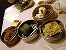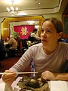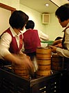 i couldn't feel my ass anymore after sitting on the granite wall for 20 minutes! laurie invited her next door neighbor to come with us for dim sum, but he was too drunk last night to wake up, so it was just us two again. laurie was fighting a cold but was working on the old adage, feed a cold, starve a fever, and figured maybe a nice meal might do her some good. when we got to chinatown it was double parking day. we got our china pearl number (63) and got a seat in less than 10 minutes without even having to share a table. we sat in the function room, next to a large table of what appeared to be a family reunion and another large table of what appeared to be a party of japanese folks. despite the relative seclusion of our table, it was still very noisy. i was joking to laurie how i'd go up to these loud tables, be all friendly with them ("friends, how are you? enjoying your meal? good, good," is what i'd say), then suddenly tell them all to shut up ("SHUT UP!" i'd blurt up). just a small dose of my passive aggressivity.