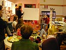 tonight wasn't the only birthday celebration in store. katrinka had a surprise birthday party and i went to the squid office after work. we played pictionary and then had cake. boys versus girls, the boys won, but (as christine pointed out on several occasion) on the girl's team they had a team member who was legally blind, someone else who's first language wasn't english, and they were outnumbered (by only one though). the party wasn't anything big but it was pretty fun, i haven't visited squid in a long time. a lot of the people there were new, and i left not really remembering any of their names.