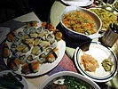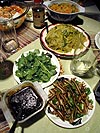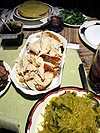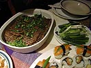 so then dinner! in our house we eat our turkey peking duck style rolled up in a bing with hoisin sauce, chinese chive, coriander, and of course strips of turkey. it's almost like a family secret because i don't know any other family that eats thanksgiving turkey this way. i am also a complete barbarian when it comes to thanksgiving. i've been waiting all year for this food orgy, i don't exactly obey the normal rules of proper dining etiquette. i take what i want, i eat with my hands, it's very savage. after i'm well fed though, i once again become quite docile.