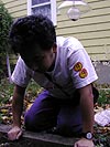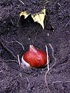 when i came home it was already starting to get dark, but i had some bulbs to plant so i went out into the backyard, found a patch of land, and cleared it for my bulbs. i didn't have any digging tools other than the hoe, so i had to dig the holes for the bulbs with my bare hands. something very earthy about getting my hands dirty, actually scooping out handfuls of dark, aromatic soil that's kind of fun. bulbs are weird. they're a lesson in patience, a lesson in trusting how nature works. they seem like inanimate objects, but you bury them in the ground and wait until spring/summer, and suddenly they sprout and beautiful flowers appear.