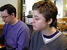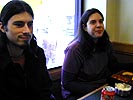 scott and anuj where there as well, but anuj and john left when it appeared that we wouldn't be able to get in. we were finally able to talk our way into the place, with eliza and paula, followed by rebecca and amy. amy didn't stay long, and when she left, lisa stopped by briefly before she left as well. i think amanda spent most of the time making fun of me, which i think is now her favorite hobby. i played her in a game of 9-ball foosball and lost 4-5. it's been a long time, she said i cheated because i spun the poles, i said she cheated because two of her balls when straight into my goal on the first hit and she wouldn't let me change the rules. despite the fact that i lost (i like to think on purpose), it felt good to get my hands on those foosball handles. felt like home. my total liquid intake for the evening: two root beers. rebecca told us stories from her semester at sea and the crowd was especially delighted by her turkish bathing house molestation anecdote. amanda had her own molestation story of when she went to foxboro stadium recently and was groped by drunken patriots fans on her way to the bathroom. rebecca and paula traded wedding tips with one another. scott revealed more of his past, and the evening start out with a spirited conversation on cow tipping and cowpie tossing in the midwest. that half of the table also talked about the best way to give yourself an affordable haircut, whether it's cut by a significant other, an electric clipper, or the flowbee. the conversation wouldn't be complete without another headscratching discussion on why i don't drink. eliza and i showed each other the content of our bags and i discovered that she actually belongs to a book club and their current book of the month is the name of the rose by umberto eco. i also learned that eliza wasn't the only one, but a lot of people downstairs belonged to book clubs (although rebecca recently quit hers, good for her!). i never felt more stupider in my life!