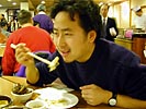 so we ate. laurie got a special order of clams. in one of them i bit into something hard and crunchy (they all have something hard and crunchy in them, it's called sand). i pulled it out of my mouth and discovered it was a small crab! how it wound up inside of a clam, i have no idea. i joked about how i would probably get sick from the shellfish, but since i didn't have to go to work today, it wouldn't be so bad if i spent the rest of the day with food poisoning. but that's what makes dim sum exciting, that russian roulette element that patrons keep on coming back for!