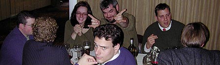 we had a great seat, right by the window, and with the snow falling outside (although it was hard to see, the path leading to the restaurant is sort of in an enclosed alleyway), it was a very magically festive mood. the company covered two long tables and a circular table. the bosses sat at the round table, one long table was mostly guys, the other long table all ladies. as the only true single full time male employee of srm, i felt it was my prerogative to seat myself at the ladies table, which was exactly what i did.