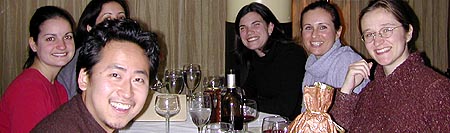 eliza, who sat next to me, would every 20 minutes or so take off her sweater because she was too hot, but then 20 minutes later put it back on because she was too cold. i don't remember much of our lunch conversations at the table. there was another discussion about book clubs, some talk on how cheap property is in canada (and how good the standard of living there is), and rebecca humored everyone with her spring break hedonism story. paula and amanda got busted in the bathroom, plotting to not return to work, when they discovered rose was in one of the stalls. it was only 3:30pm when the party came to a close.