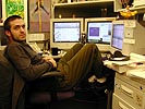 after work i went to the screen house office where i was to meet julie so we could go see this documentary film playing at the museum of fine arts about the bridgewater (massachusetts) mental hospital for the criminally insane. this movie use to be banned. i knew the subject matter would be depressing and i would probably derive no joy from seeing the film, but since i never seen a movie at the mfa, i was essentially going for the experience. i waited downstairs for julie and bumped into jared coming down. he let me upstairs using his access card. i went in and saw elias, klea, dan and chris muesel. and of course julie, getting ready to go downstairs.