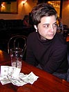 the last group to arrive was roy and tim. when tara and her friends left, roy scooched up to our end of the table. don't recall to much of what we talked about. tim and i talked a little bit about football and a lot about basketball. there was a discussion about some of the shadier parts of philadelphia, city of brotherly love. dave brought up the topic of man-dog bestiality which everyone added some sort of input to, and both tim and elias bombarded me with questions about the subtle details of maintaining a weblog. it was weird, i've never up to this point really talked about what it takes to do this site. i guess in the 8 months that i've had this weblog, i've become sort of an expert at it. i could've talked for hours about it, it was almost cathartic to finally get everything off of my chest and to share my experience with others who might find it useful.