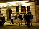 i took the t to park street, where i headed to the 21st amendment, located right next to the under-construction massachusetts state house. while walking up the street, i heard a voice calling my name and i turned around to see tunde. together we entered the establishment and found julie, jared, dave, and elias sitting at a small table (they had just arrived as well). the 21st amendment is a lawyers/politicians bar, the clientele being mostly men and women in smartly cut business suits. we totally didn't fit the description of the usual patrons, with the design department all decked out in mostly black and me in my red pants. tunde and i grabbed two seats and squished in together with the rest of the gang. they had just gotten dinner at some restaurant in chinatown, a brown doggy bag sitting at the end of the table. the place had a jukebox which julie was able to select two songs from. i ordered a coke for myself. unfortunately, tunde had to leave at 8pm, and when a bigger table opened up and we made the jump to the new location, tunde surreptitiously slipped away.