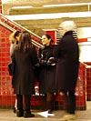 we walked to park street, where roy and tim took the green line while the rest of us caught the red. the train eventually arrived and we got on. during the ride, a woman sitting next to us made some comments on how much she admired julie's animal mittens. i was yammering away at something which i completely don't remember now. i think most of tonight i acted intoxicated even though i only had three cokes and one doctor pepper (during lunch). maybe it was a sugar high. i couldn't stop talking! the bus ride home was where i reverted back into my silent mode, smelling the stench of cigarette smoke infused into my coat, sitting quietly the 10 minutes of public transportation travel before my stop arrived and i got off, politely thanking the bus driver. thus concluded my evening.