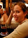 tara and two of her friends showed up. there was no more tables available, but fortunately the two british women sitting next to us were leaving, so we eventually had the whole wall to ourselves. tara told me that she and a bunch of other young ladies were laid off before the holiday break. that blows! she seemed to be in good spirits however, and told us the story of how she almost became a licensed private investigator. when the waitress made her round to our table, i ordered another coke (my third of the evening) and a cheese burger with fries.
